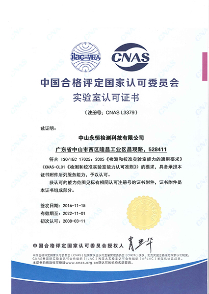永恒檢測嚴(yán)格按照ISO/IEC 17025建立實(shí)驗室管理體系,獲得CMA(國家認(rèn)證認(rèn)可監(jiān)督管理委員會)認(rèn)證及CNAS(中國合格評定國家認(rèn)可委員會)認(rèn)可,所出具的檢測報告具有法律效力和國際公信力。